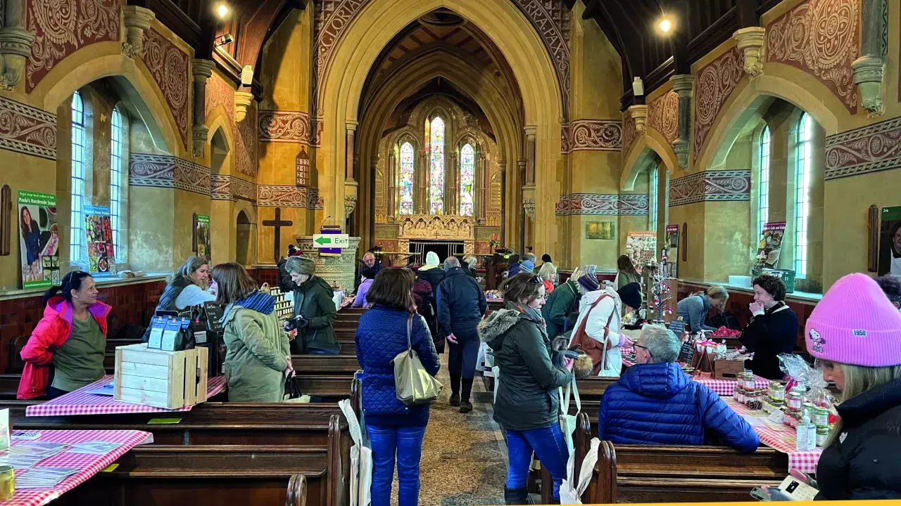 “Then in terms of how it works, there are around 15 to 20 stalls. We have to have some outside, like meat and fish, because you don’t want the smell inside the church. But then some are inside, including the coffee corner. We put boards on the pews to create the surfaces. And some of the pews are on little wheels so we can move them.”