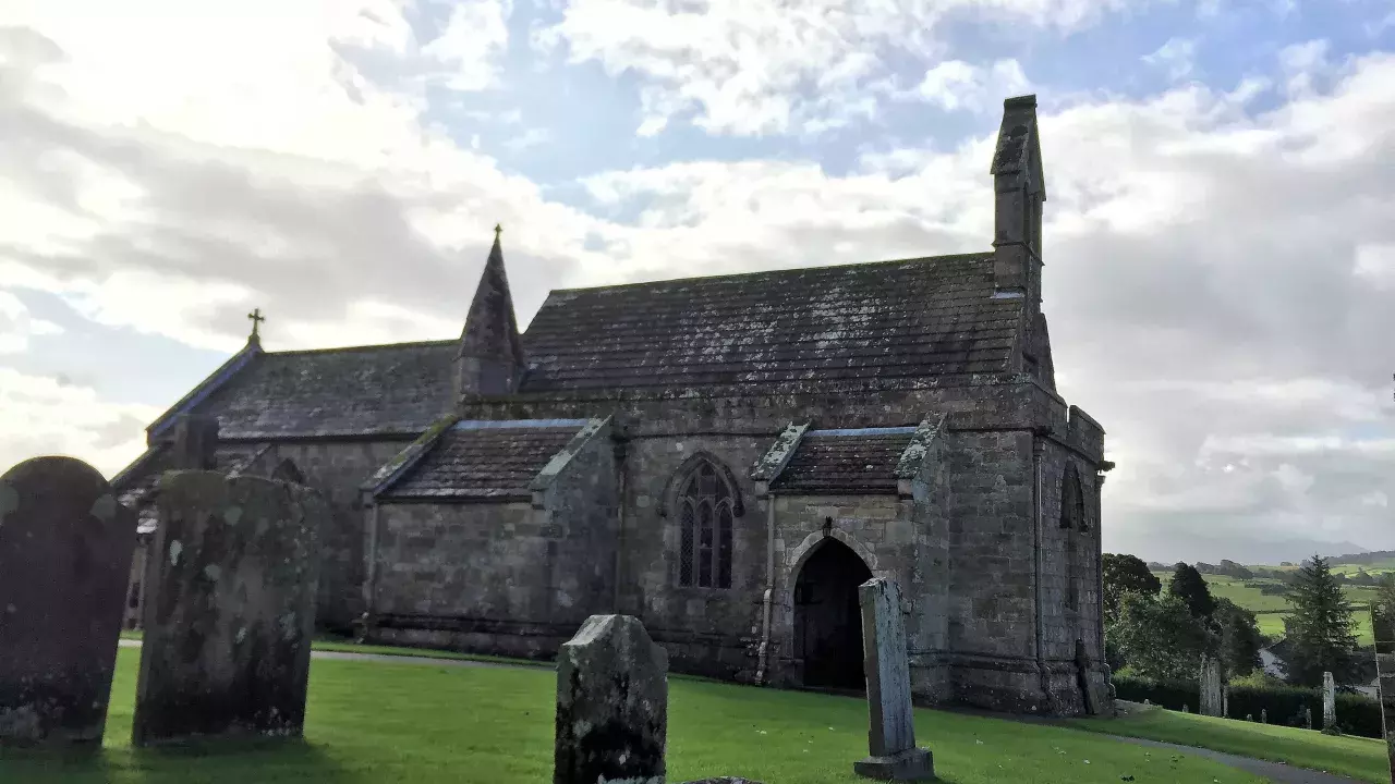 Approached along a path through a well tended avenue of yew trees, All Saints offers views across the back of Skiddaw. To the right is a sundial erected in 1747 and to the left of the entrance porch is a stone effigy of a lady. Her hands are clasped to her breast, with her head on a cushion. The details of the dress seem to point to the time of Edward III (1327–1377). It is possibly a 14th century coffin lid.