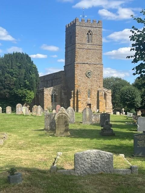 A large 14th and 15th century church with a slightly earlier tower impressively placed at the edge of the village near Norton Hall formerly a seat of the Knightley family and in the 19th century Beriah Botfield, the bibliophile.