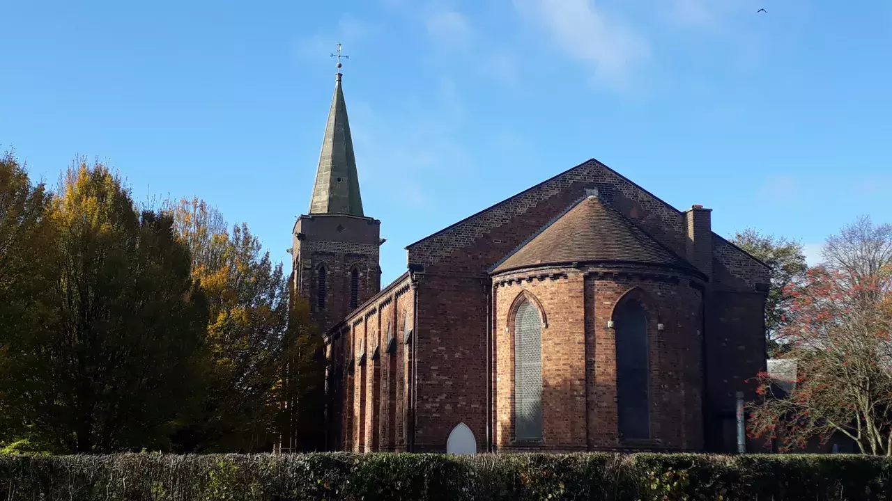 The church was built in 1842 to supply the spiritual needs of the poorer brethren residing in the hamlet of Attleborough. It was built by William Arthur Watson from brick with a tower and spire made of stone at a cost of £4000. Originally there was only one bell in the tower but two more were added in 1892 on the occasion of the churches Golden Jubilee. In June, 1936 the spire was struck by lightning and was restored the following year in Staffordshire stone. At 87 feet, the spire is 8 feet taller than the original one. It is Grade II listed.