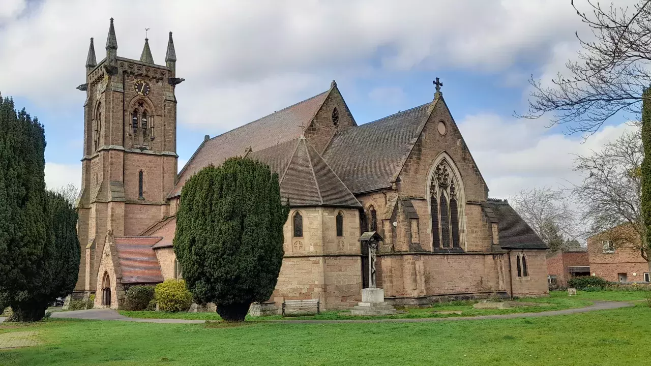 St Stephen's was built by the eminent Birmingham architect Charles Preedy between 1861-1862. It is Grade II listed and is of sandstone ashlar with plain tile roofs. It has a lofty aisled nave and chancel, of a decorative style with four pointed arches separating the nave from the aisles. The nave is lit by large windows and clerestory that produces a cathedral-like atmosphere. The Lady chapel was built between 1912-16. The tower is of three stages, with double buttresses and a newel staircase leading to its top. The tower has openings at the bell-ringing chamber level. The south porch is the main entrance and has a pointed moulded arch set on paired marble columns with stiffleaf capitals. The west door is similarly enclosed by arched stonework and opens on to late 20th century brick and tiled covered way with a recently constructed paved access ramp.