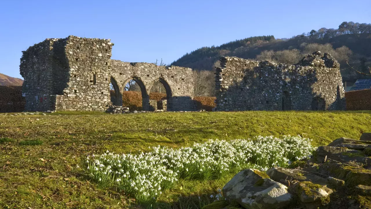 It was always very much a Welsh house and suffered for it in the wars of independence. The buildings were never completed: of the church, only the nave was ever built, and the cloister seems to have lacked a west range. The situation is typically Cistercian, in a remote valley with fast flowing streams. It was near to the little town of Dolgellau, though, and the old Roman road, the Sarn Helen, went nearby. It would have been possible to follow the line of the Roman road much of the way from Strata Florida to Cymmer, and our route from Cymmer uses it most of the way to Conwy.