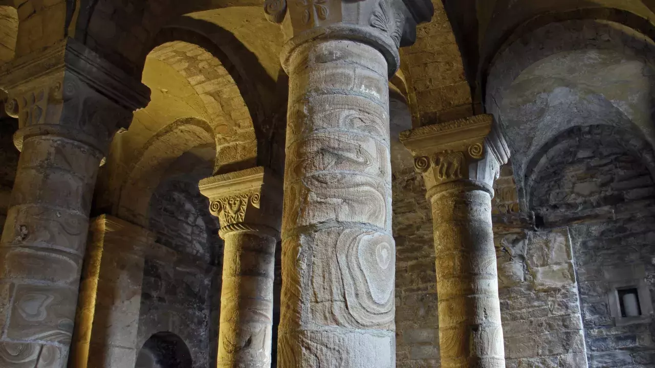 Durham Castle was the original home of the Bishops of Durham, and has two chapels. The first, the Norman Chapel, was built for the first Bishop of Durham in 1178, making it the oldest place of worship on the World Heritage Site. It has unique carvings on its stone pillars, including a mermaid and other mythical beasts. The Tunstall Chapel was built in 1554 by Bishop Tunstall as part of extensive renovations to the castle. The wood panelling was originally in the Bishop's chapel at Bishop Auckland and is notable for several unusual misericords including a pig playing the bagpipes and a man pushing his wife in a wheelbarrow! Other highlights include the fine organ casing (originally in Durham Cathedral) and several works of art. The original portrait of Bishop Tunstall illustrates the history of the Reformation in England, as he was first painted holding rosary beads which were later painted out. The altar front holds some fine Victorian revival angel paintings.