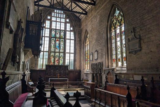 Beautiful greenstone Perpendicular church nestling on the edge of the Lincolnshire Wolds containing a large number of grotesquely carved heads around all the arches including the chancel arch.