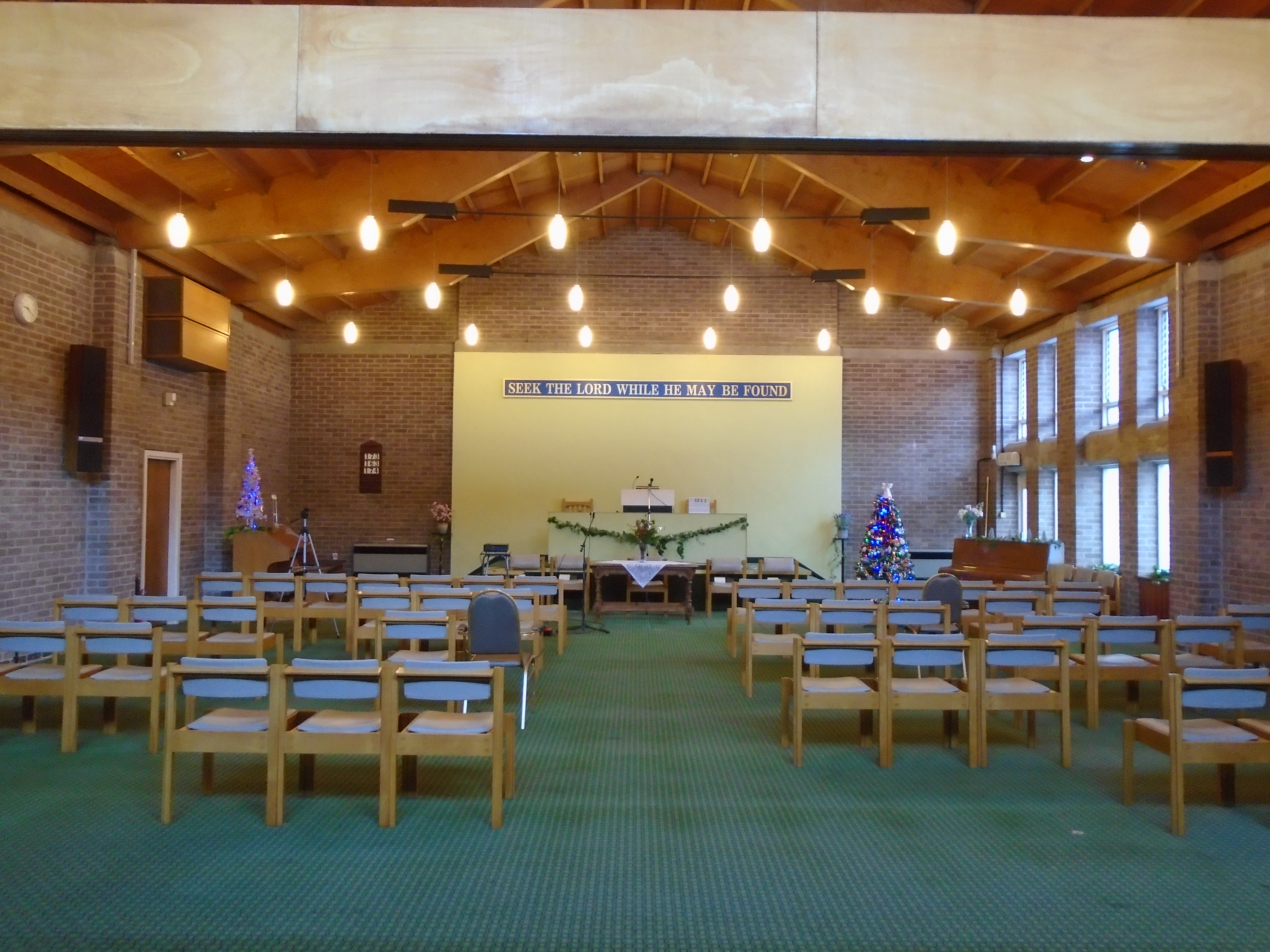 Our original chapel was built here in 1812. The present chapel was opened in 1977 and is a good example of 1970s Modernism, relatively unaltered since it was built. The church was built with a bookshop attached, which is still open regularly. Founded as an Independent church in 1810, the church is today still very much in the Congregational tradition.