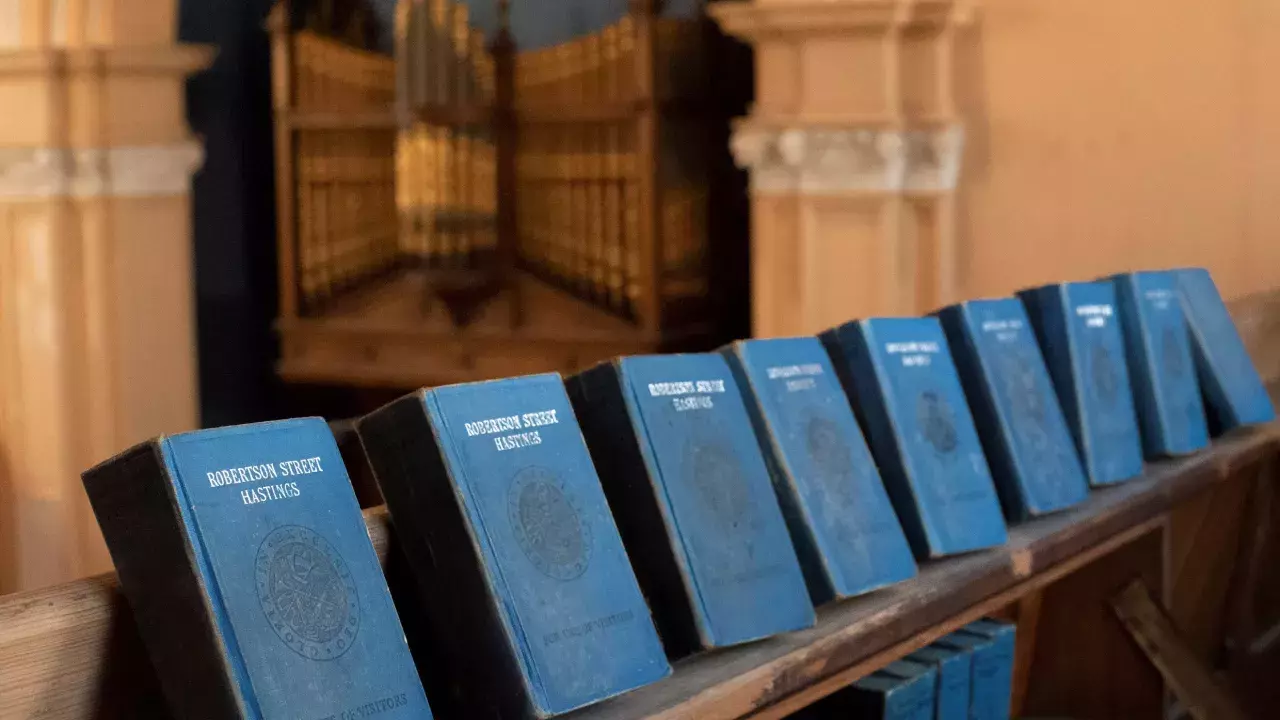 His Place Community Church is a free church housed in the former Robertson Street Congregational Church. The building was designed in 1884-85 Henry Ward and remains a landmark presence in the Trinity Triangle area of central Hastings, with two striking Classical facades visible to the public: a tall, narrow one facing Robertson Street to the east and a large, six bay elevation facing Cambridge Road to the north.