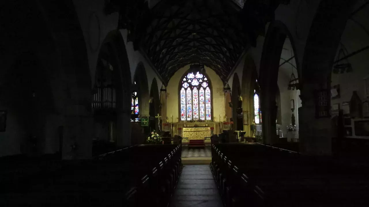 Standing on the site of a Saxon church, the Norman church was enlarged to its present size in 1322, and the tower incorporated inside the building. It has one of the finest wagon-roofs in the west country dating from the 15th century which is richly carved with bosses, angels, figures and five Green Men in a row. At the East end of the nave above the former rood screen is a ceilure or Glory, with three bays enriched by cross ribs and much decoration.