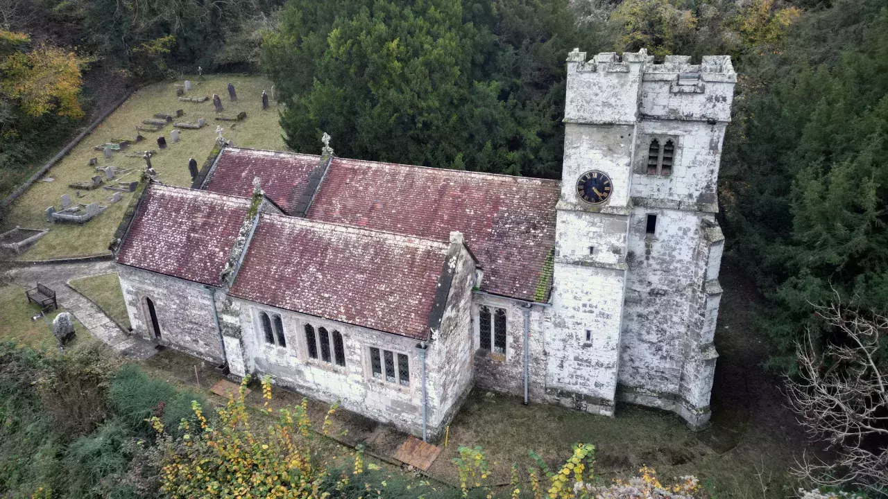 St Eustace is a 14th century Grade II* listed Anglican church perched on a steep chalk escapement overlooking the village of Ibberton and the Blackmore Vale.