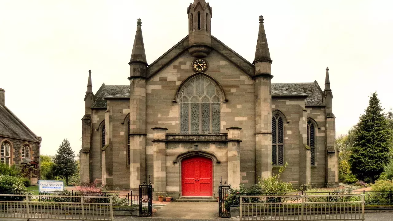 Designed by William Burn and built in 1826, Kinnoull Parish Church replaced an earlier church situated a short distance to the south. It is Neo-perpendicular with a Greek cross plan and houses the famous Millais stain glass window. The window contains fourteen panels of painted stain glass portraying the parables of Jesus. They are based on woodcuts designed by Sir John Everett Millais, President of the Royal Academy while he lived at Bowerswell in Kinnoull. The parables are interspersed with beautiful flower motifs. The window was gifted by his father in law George Gray of Bowerswell in 1870.