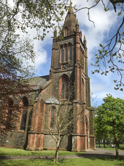 The church, originally called St Cuthberts parish church, was built between 1836 and 1838, in spacious grounds donated by the Earl of Selkirk in the centre of the Royal Burgh of Kirkcudbright. It is a large building, built of red sandstone, in crucifix form and Gothic/Tudor style, intended to seat 1,500 people. The architect was William Burns, who designed over 300 public buildings including the Scottish National Gallery of Modern art in Edinburgh.