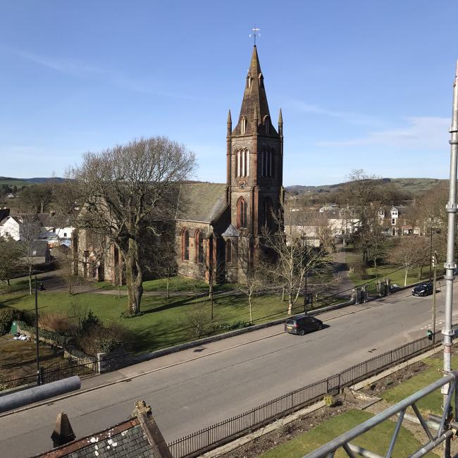 In front of the pulpit sits a large oak communion table, unveiled in 1921 in memory of local people who died in World War One. The names of those who died in World War Two were added later. The first minister, in 1838, was Revd John McMillan. When the Church of Scotland split in the Disruption of 1843, he left to become minister of Kirkcudbright Free Church, later to become St Marys Church. Happily, the congregations of St Cuthbert's and St Mary's re-united in 1983 to form Kirkcudbright Parish Church.