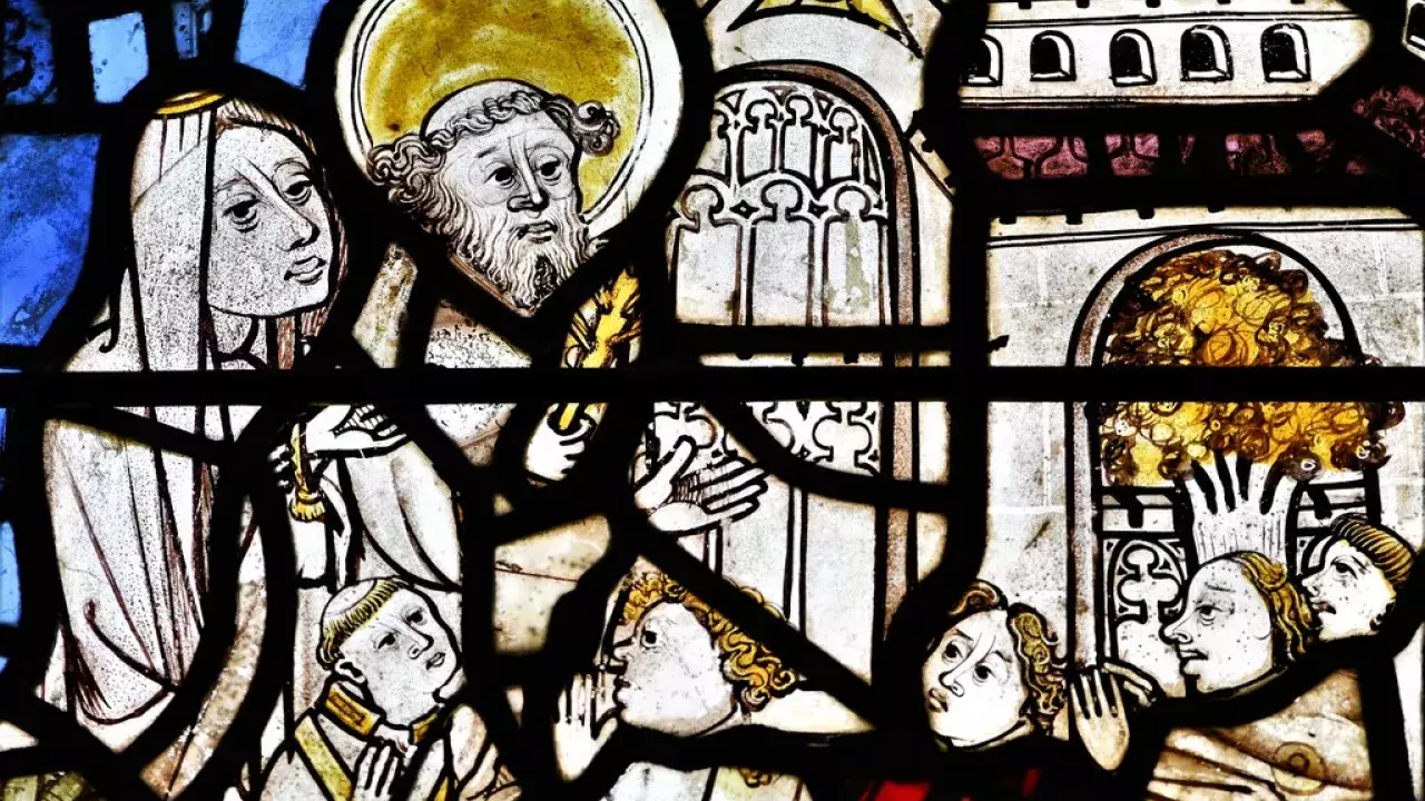 The oldest window in the church is the bestiary window on the north side of the chancel; the only other ancient glass is behind the organ, and in the clear window above the Lady Chapel altar. Because of the value of this clear glass, fragments have been joined by lead.