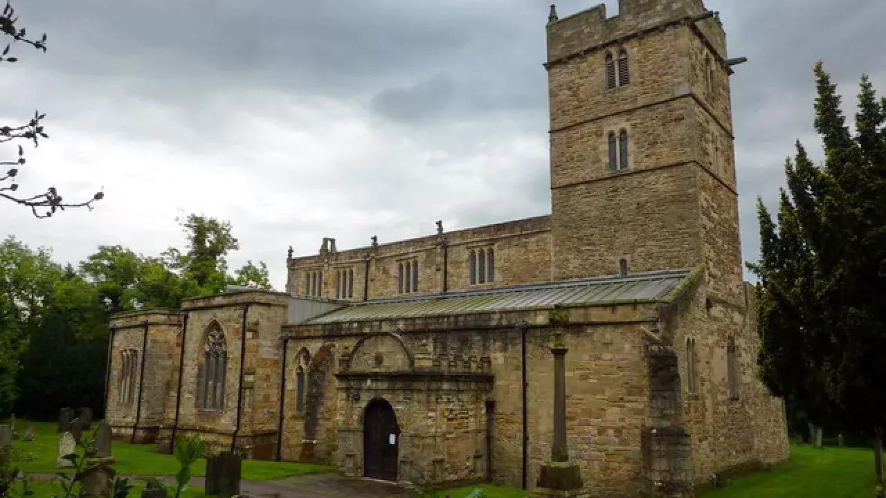 First mentioned in 1183 in the Bolden Book, here are two 13th century stone effigies of a knight in armour and his lady.