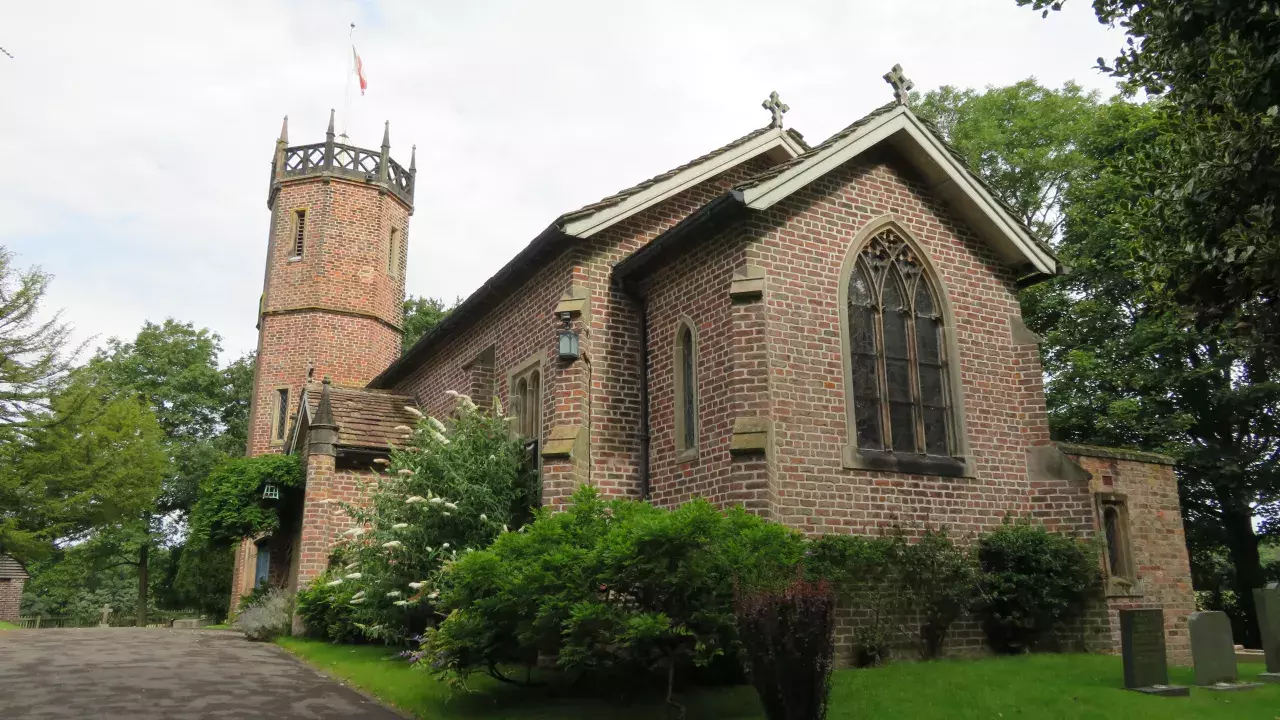 In 1840, Thomas Hibbert of Birtles New Hall, built a chapel at the entrance to his estate. The family collected valuable oak carvings, stained glass and brass from various sources. Much if this, being hundreds of years older than the building itself, gave the interior of the church a rather unique appearance.