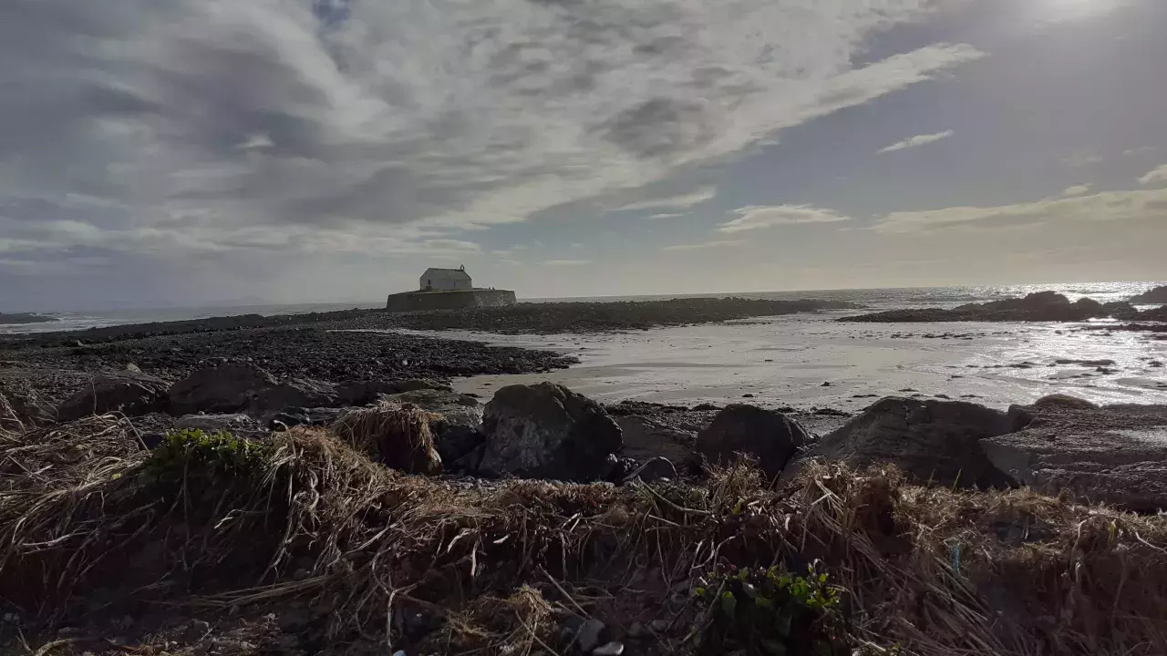 A causeway was built to the island to allow parishioners to get to the island. Its remains are visible, but even with the causeway, sometimes high tides prevented access. At those times services were held in a room in the nearby house, Plas Llangwyfan, which was specially consecrated for the purpose.