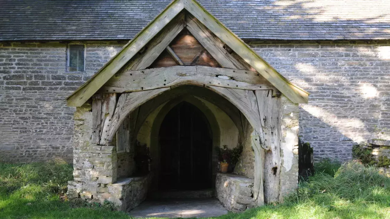 Ancient church and quiet garden on the Offa's Dyke Path in the Welsh border.