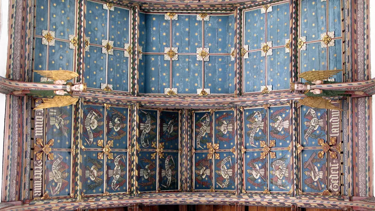 The interior is much of interest, from the 15th to the 20th century. Outstanding are the medieval screens separating the nave and aisles from the chancel and chapels. These retain much of their original colour, and paintings of the Disciples, prophets and angels.