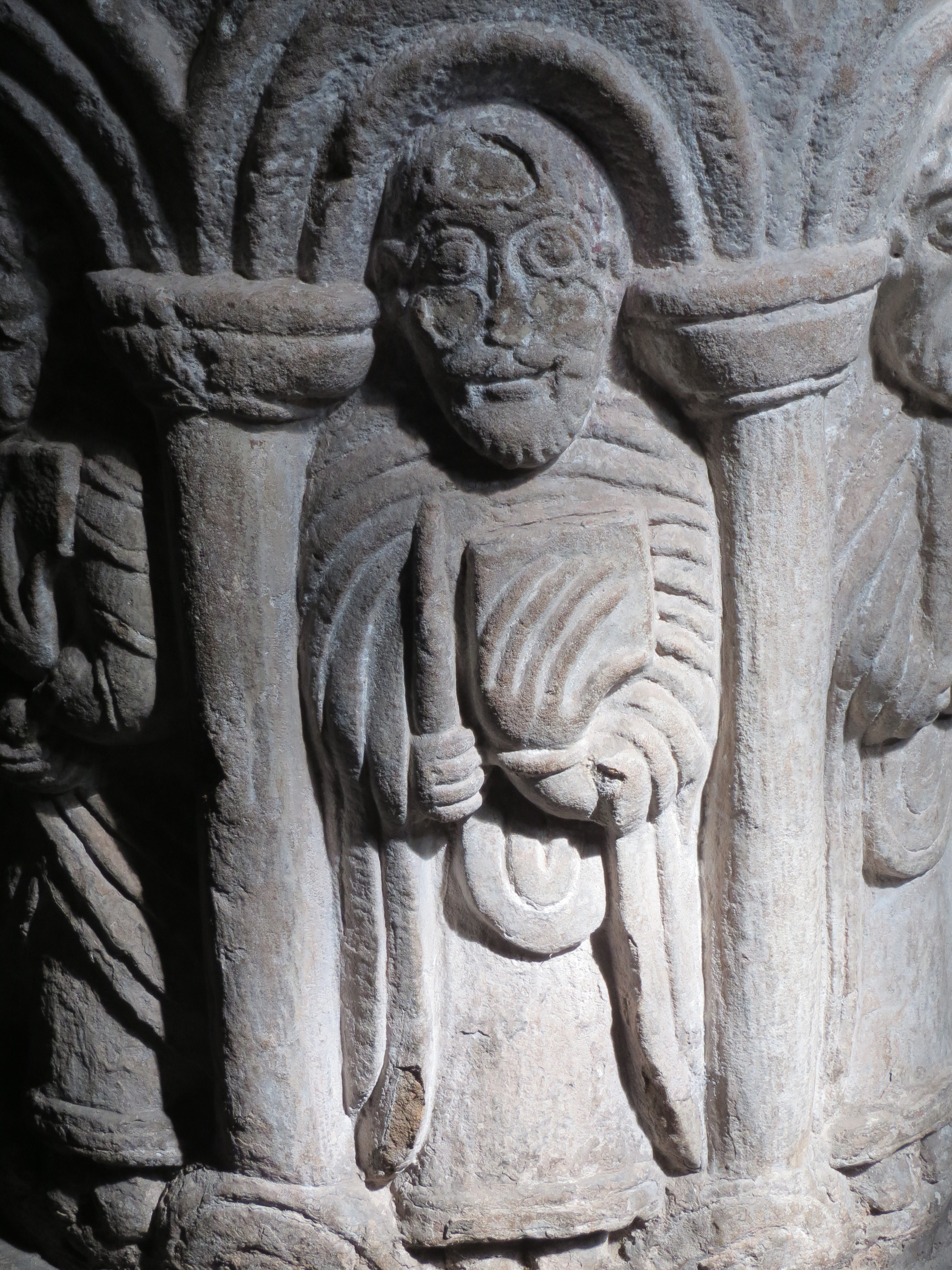 There is a very intricately carved Jacobean pulpit of 17th century origin above which is a crucifix carved by a Belgian refugee in 1916, as a token of thanks for the hospitality he received in the village. The 12th century font is notable for its arches depicting the Apostles.