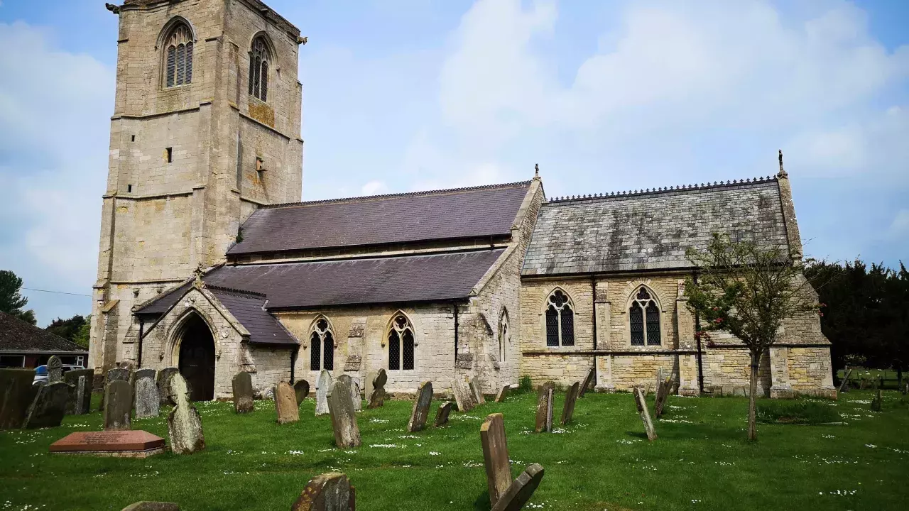 The north arcade and part of the north aisle survive from the 13th century, with a 14th century south arcade. The tower and font are 15th century. The damage on the font is said to have occurred when Cromwell's soldiers sharpened their swords before the Battle of Winceby.