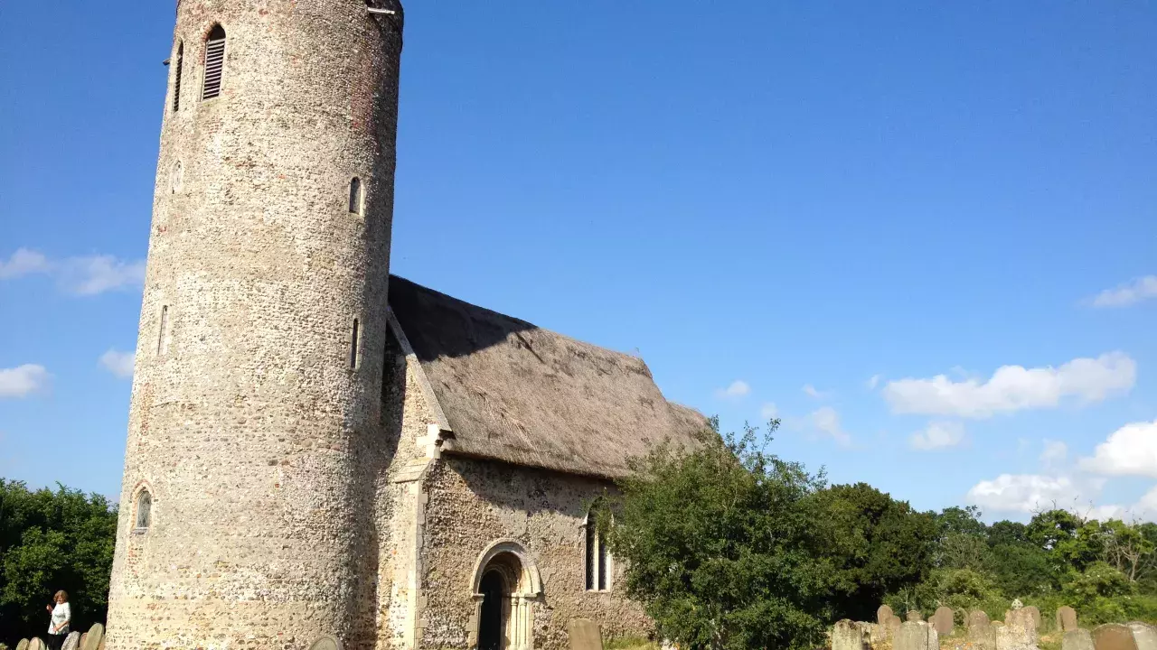 St Margaret's, with its round tower and thatched roof, is a church from another time, standing in an isolated setting, as if still in its 12th century Norman world.