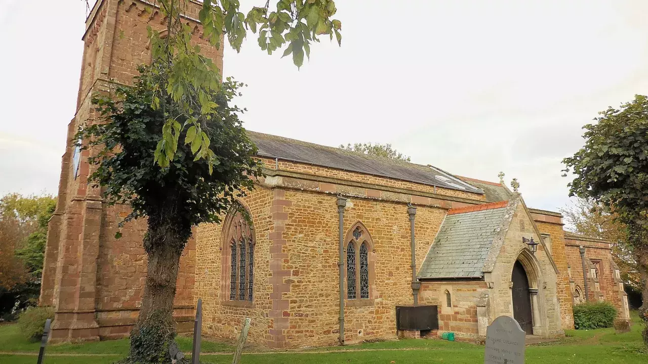 Barby has had a church since Saxon times and its foundation has been attributed to 891. Fragments of the early building can be seen in the church (5, 12), and it is likely that stone from the building was used in the restoration of the church in the 13th and 14th centuries. The chancel and the tower date from that period. The north and south side chapels (were added in the 14th century and the priest's room over the north porch is contemporary with them. The nave was extended southwards in the 16th century. ln the 17th century the chancel was enlarged eastwards and the tower was restored during the time of the Revd Richard Thorpe in the 1660s. The building was largely unaltered until the late 19th century when there was a major restoration by Canon R Stovin Mitchison. During this work medieval wall paintings were uncovered when the walls were treated but little trace remains today. In 1996 - 97 the stonework of the tower, together with lead and other stonework, were again restored and the clock was refurbished.