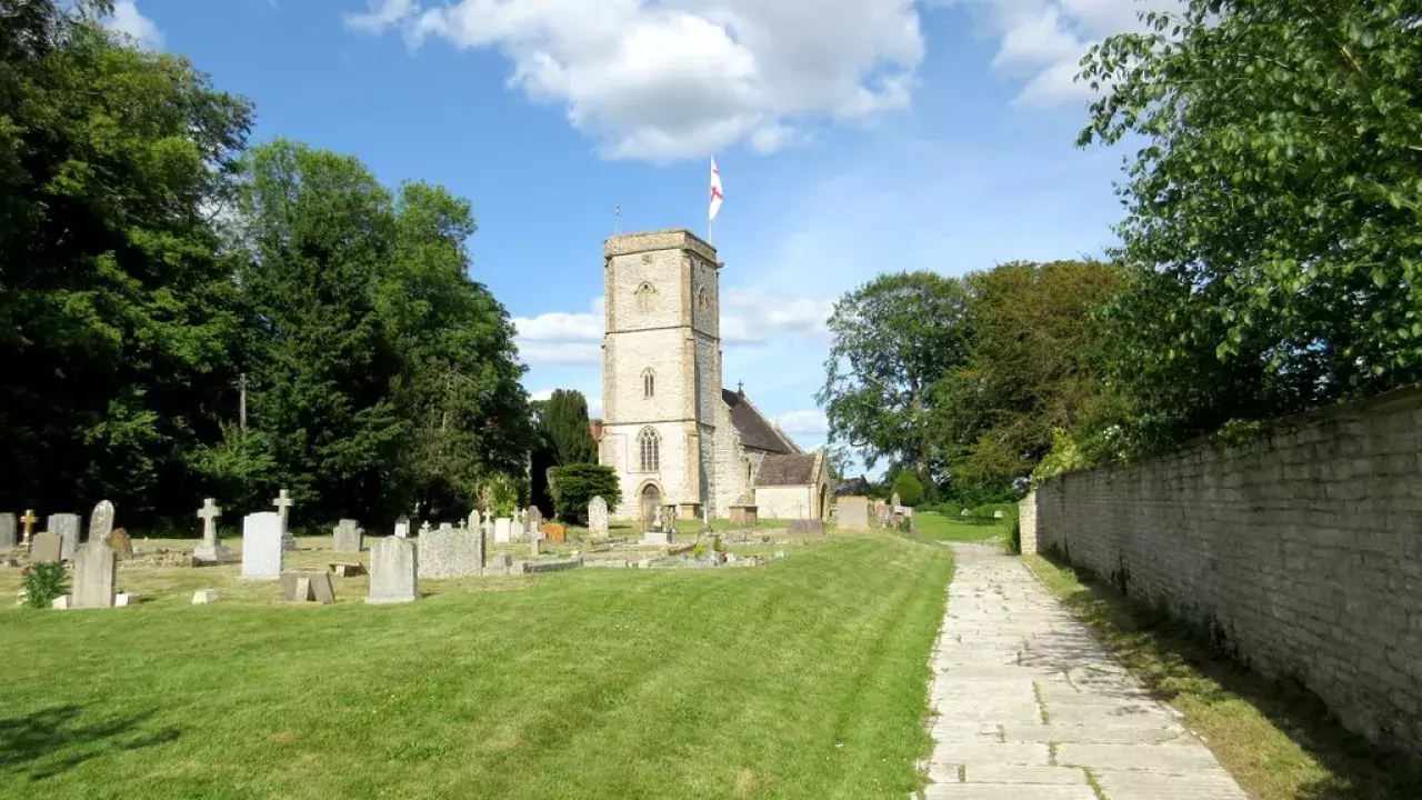 Ancient stone built 13th century church in beautiful countryside village setting.