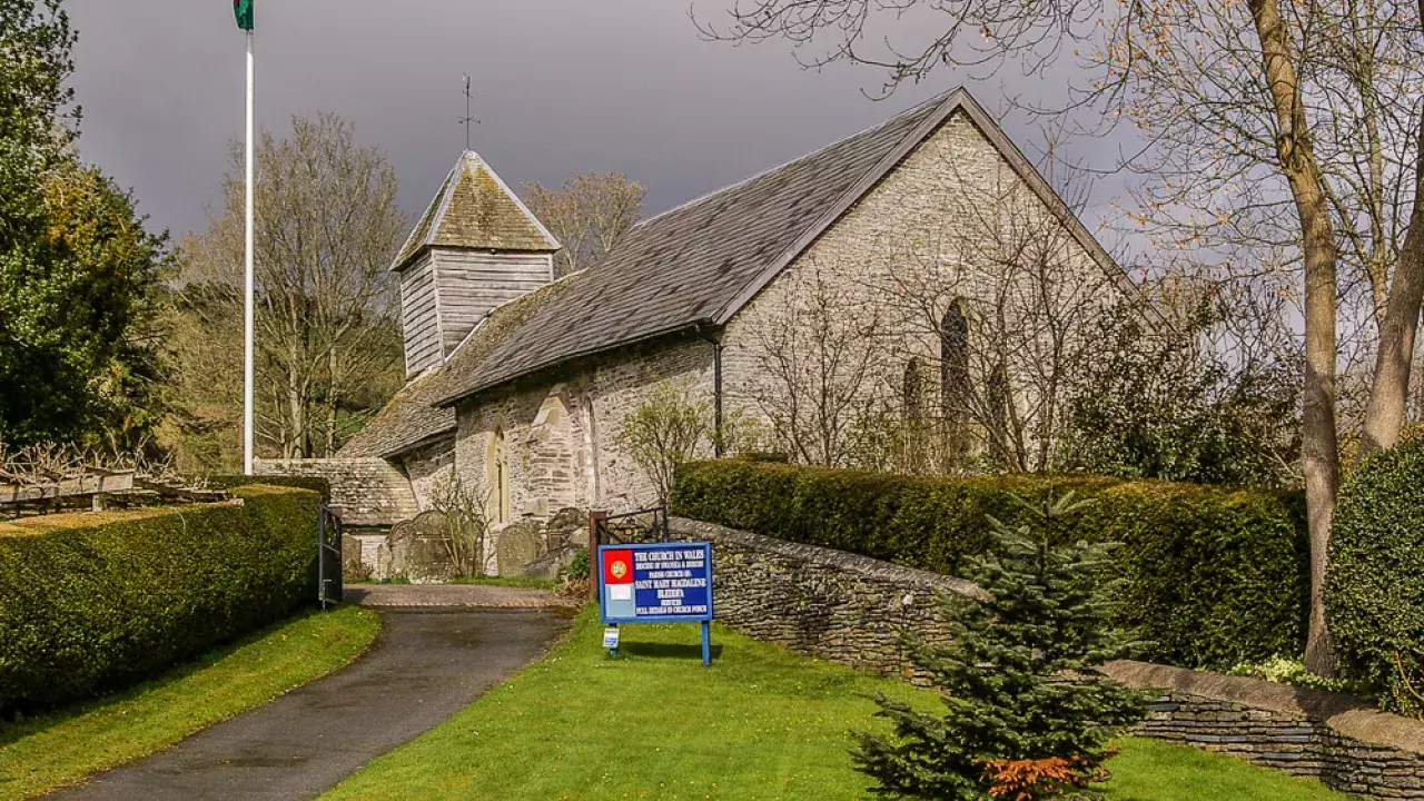 For many years a mysterious mound at the west end of the church was thought to be a prehistoric burial chamber, but when it was excavated in the 1960s it was discovered to be the base of a substantial stone tower to the church. Excavations showed that the tower had been burned down, and it is assumed this happened during the revolt of Welsh patriot Owain Glyndwr in the 15th century. The church is the setting for the annual Bleddfa lectures, organised by the Bleddfa Trust, which seeks to unite creativity with spirituality through talks and activities.