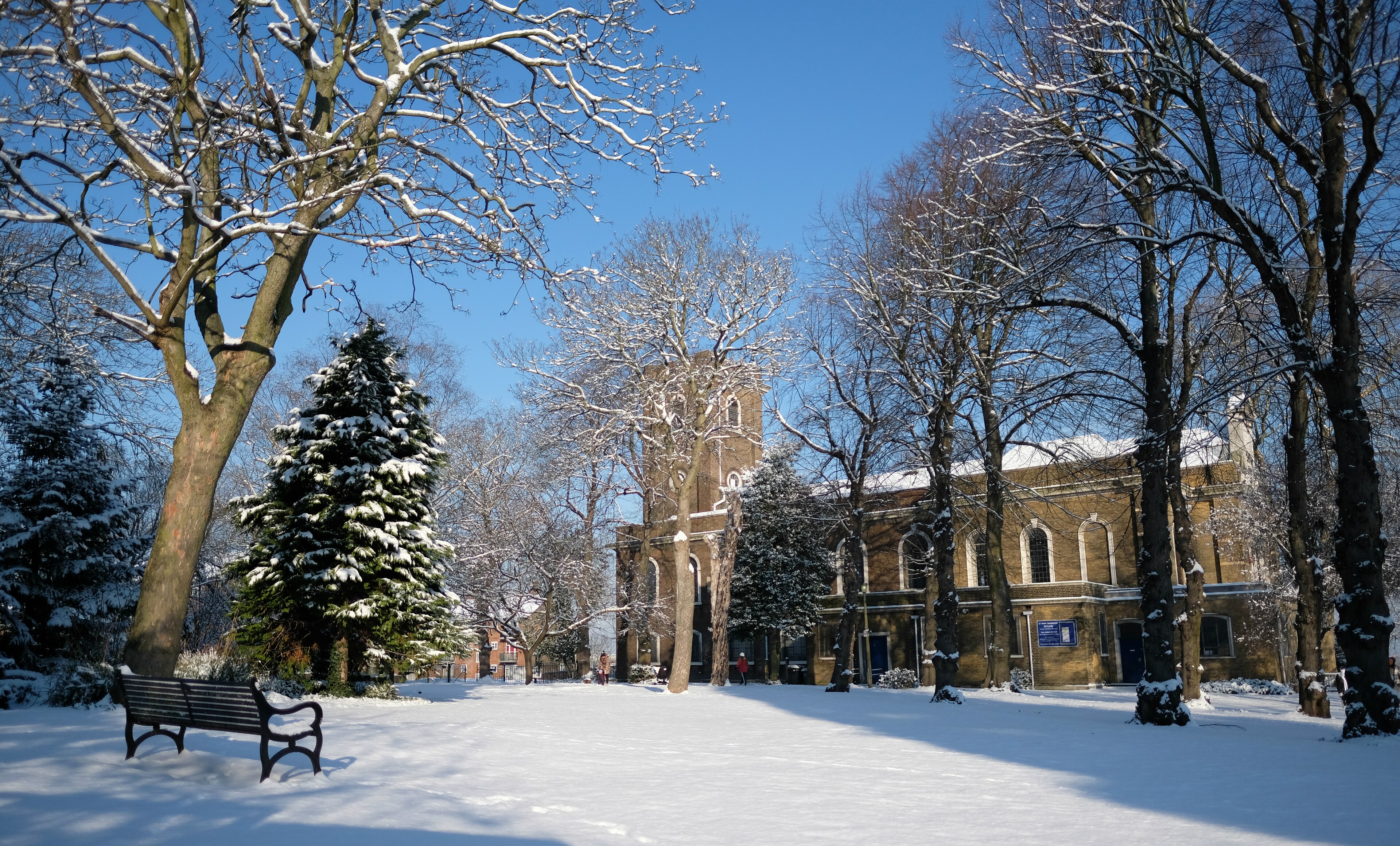 Many headstones from the graves in the churchyard were repositioned against the wall of the churchyard when the care of the gardens was handed over to the Borough Council. The Council still looks after the garden today, and they have made it into a little oasis amid all the blocks of flats in the area. The churchyard still belongs to the church; and underneath the pleasant gardens still exist the hundreds of graves of those buried in previous centuries.