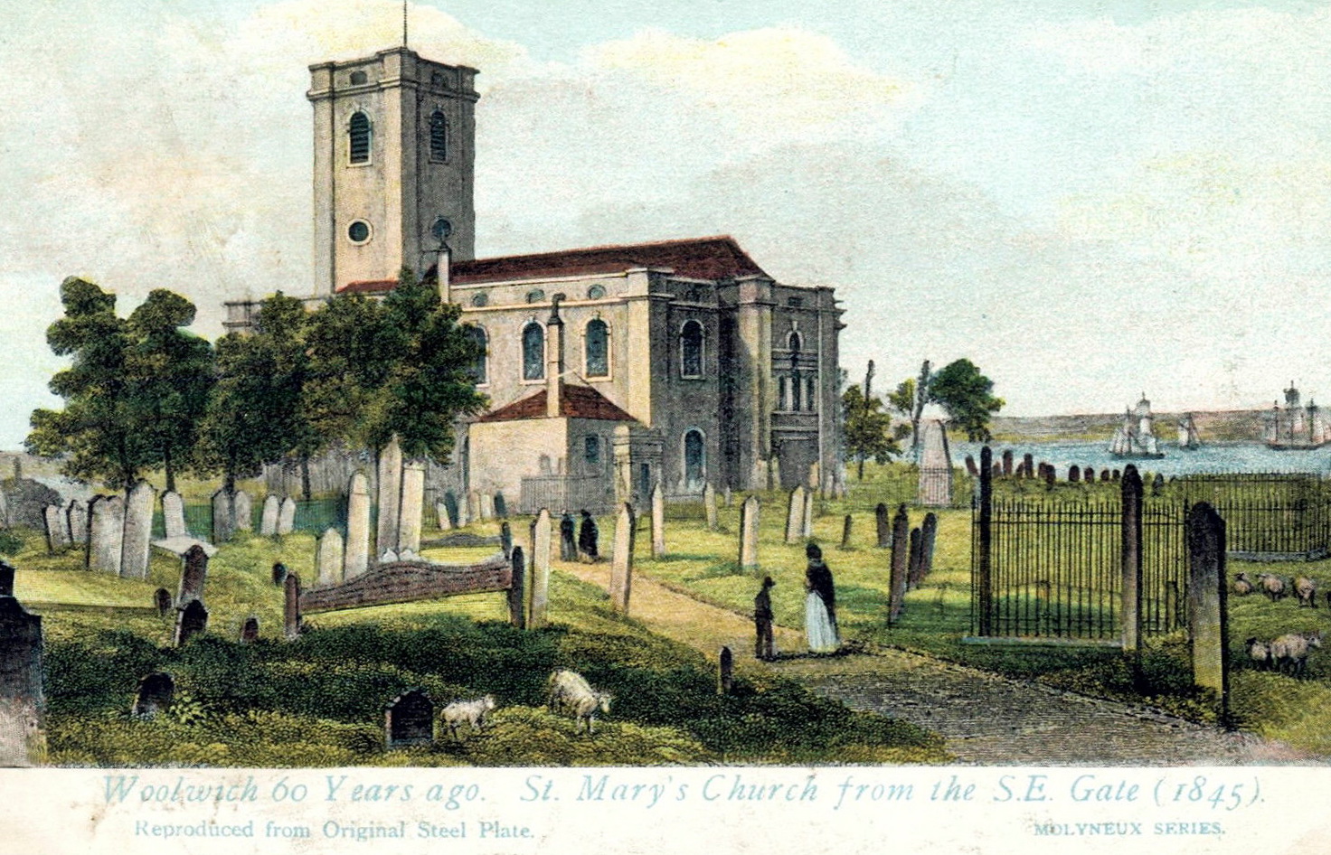 If you carry on to the east end of the church, you will see the entrance to the crypt and below the east window a plaque dating back to 1894. Turning towards the river, you cannot fail to see the large stone lion at the end of the path to your right. It is a memorial to Tom Cribb, the famous bare fist fighter. The memorial was paid for by public subscription. When Tom retired from the ring, he went to live with a son who had a bakery just along Woolwich High Street.