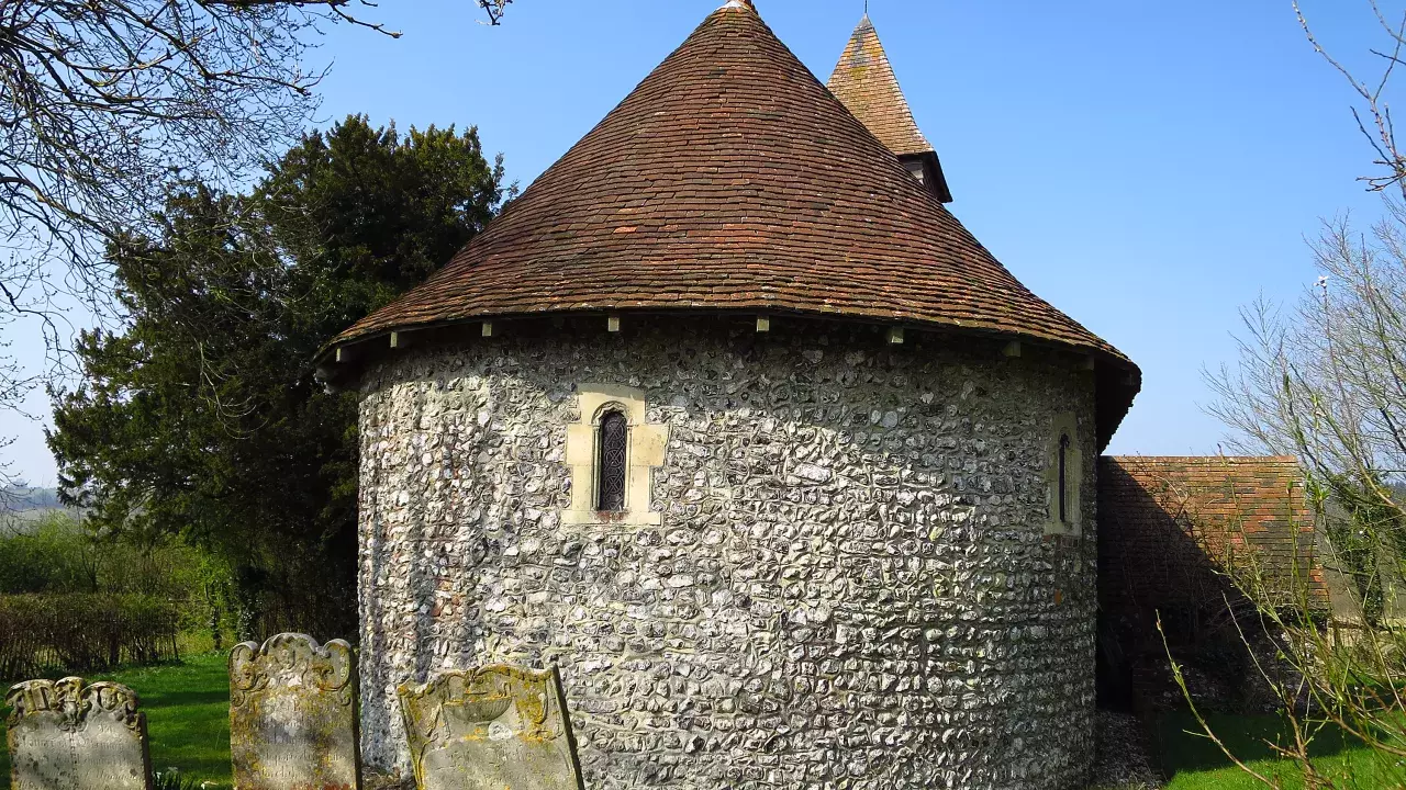 Originally a chapel of ease to East Marden and perhaps always approached through a farmyard, St Mary's is believed to have been founded by Geoffrey, son of Azo, late in the 12th century. It consists of an undivided nave and chancel. The chancel has a semi circular (apsidal) end, and is one of only six small churches in England that has one. T