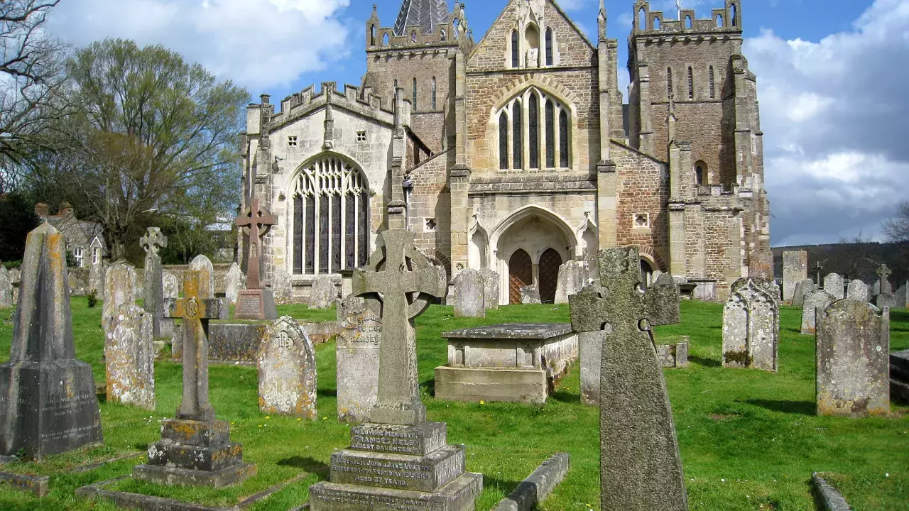 The church is largely the work of John de Grandisson, Bishop of Exeter (1312-1369), who built it in 1342, as a Collegiate Church, along the lines of Exeter Cathedral. The north Dorset aisle was added about 1520, but there have been no additions since. Most of the peripheral buildings, including the cloisters, have long since gone after the College of Priests was dissolved by decree of King Henry VIII in 1545.