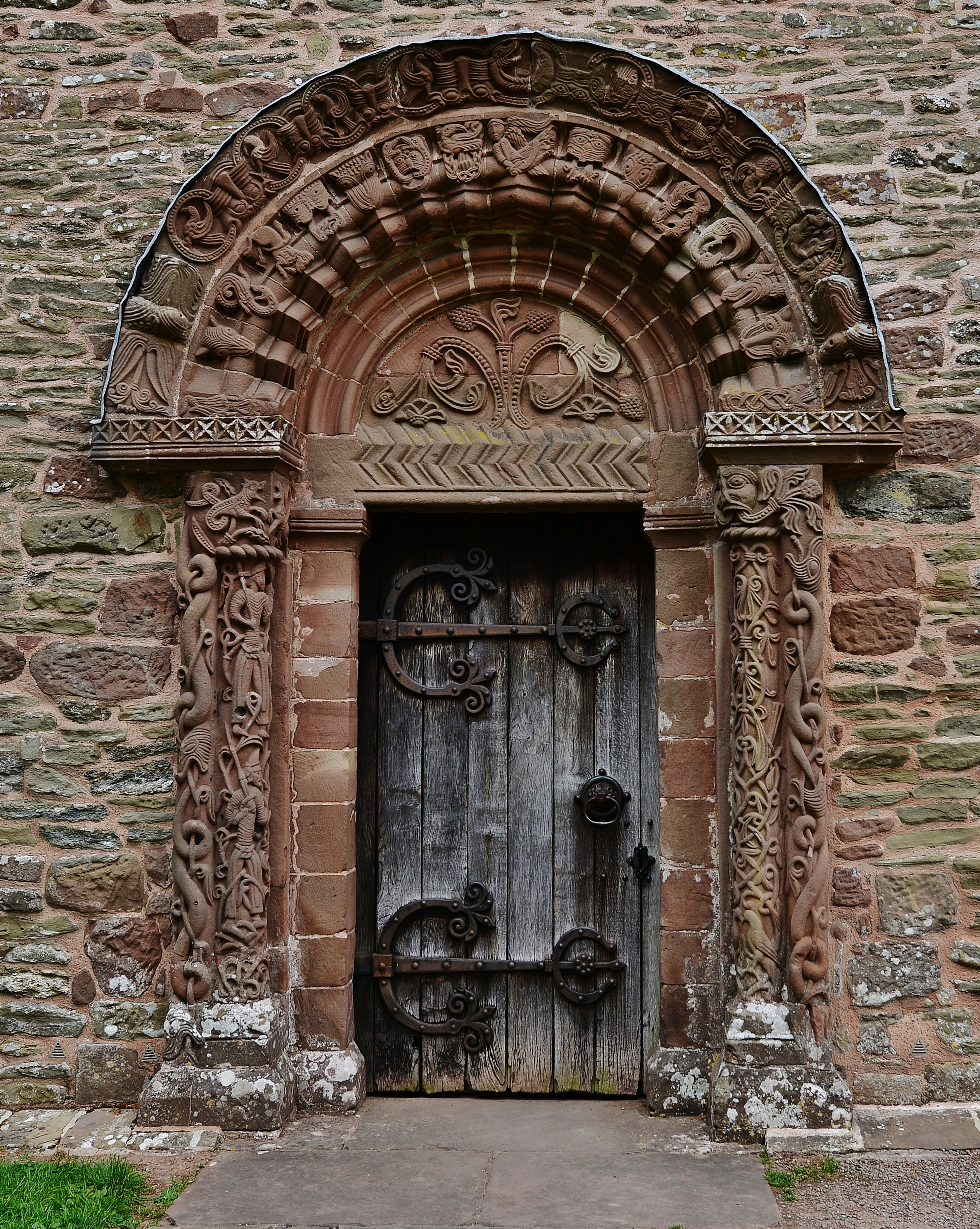 The south door draws attention first. It is alive with figures and foliage patterns. There are warriors, birds, snakes or dragons, monsters, and, near the top, an angel. The work is fluid, sophisticated and beautifully carved. The doorway is fantastically well preserved; until Victorian times it was protected by a porch. Now it is exposed to the weather, but monitored very carefully for signs of wear.