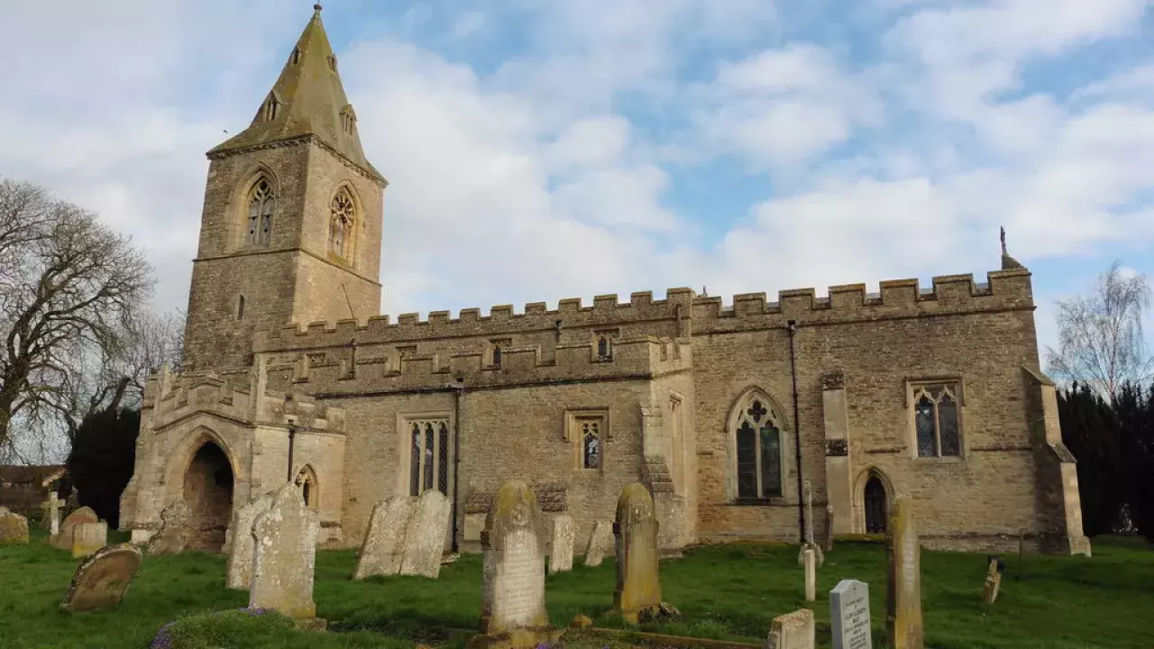 The church consists of a nave and chancel with a south aisle added later. It has a tower and broach spire housing four bells, now rung electronically. Much restoration work has been undertaken during the last two decades including conservation of ancient wall paintings. The pulpit was also restored and in 1659 led to the removal of the incumbent, William Dell who allowed the non conformist, John Bunyan to preach the previous Christmas.