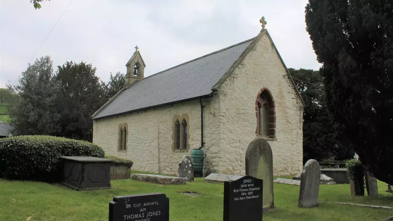 Medieval parish church built in the classic Vale of Clwyd double nave style and set in a peaceful churchyard with marvellous views of the Clwydian Range and, if you are lucky, visiting Hawfinches.
