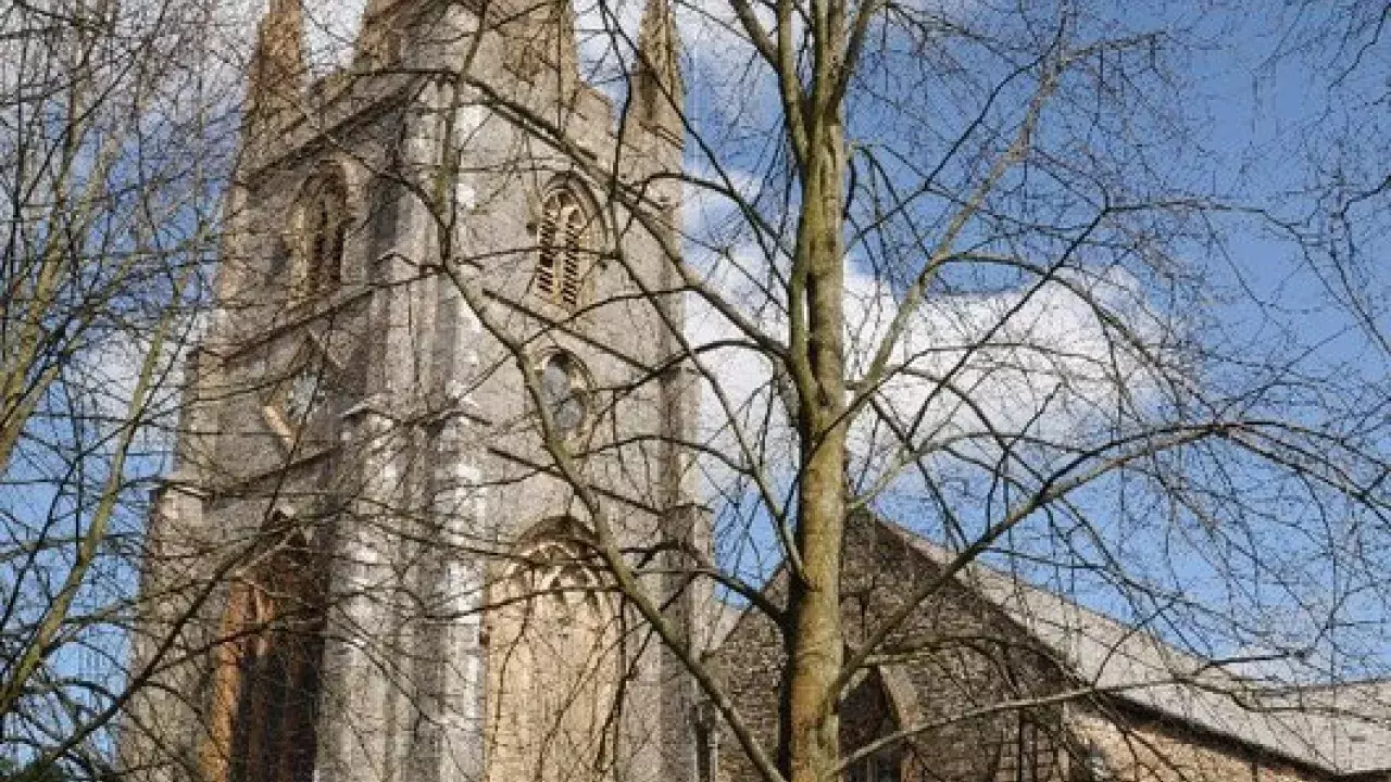 Experts differ over how much of the church was destroyed. There are 14th century pillars at the east end of the nave, while the solid square pillars farther west are from 1651. The small Tudor room at the east end of the south aisle survived entirely, and was possibly the Tudor library mentioned in some records.