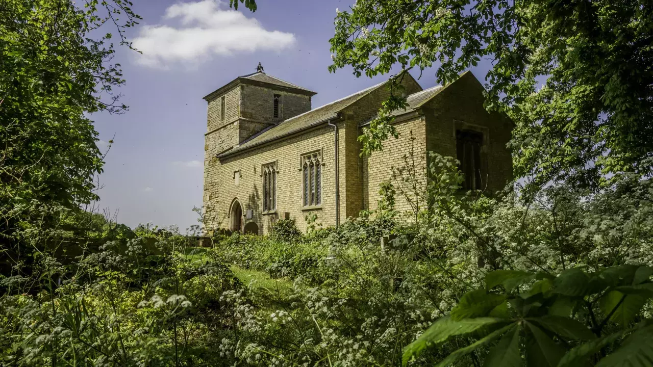 Set in gently rolling countryside, St Michael's stands framed by the large trees surrounding the part moated farm to the east. This church is one of the few remaining buildings remaining on the site of a deserted medieval village. Apart from its square tower, the church was rebuilt in brick in 1835. Unassuming outside, it hides treasures within: two extraordinary 14th century monuments to the local De Buslingthorpe family, one a brass effigy of a knight in armour on a tomb chest, showing clearly the clothes worn in battle at that time.