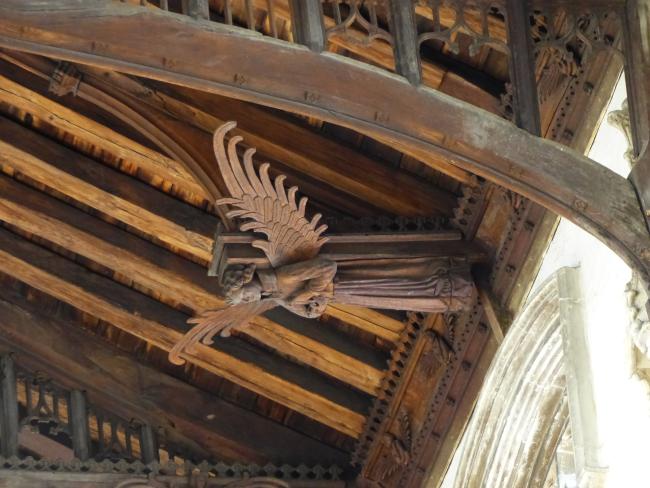 The spacious interior is dominated by its superb wooden roof, lined with angels. The font was presented to the church in 1627 by Bishop Harsnett. There are many tombs and memorials, one of the most noticeable being that to Benjamin Keene, made in 1757 by famous Scottish architect Robert Adam. It resembles a huge stone sugar bowl on top of an even larger stone cube.