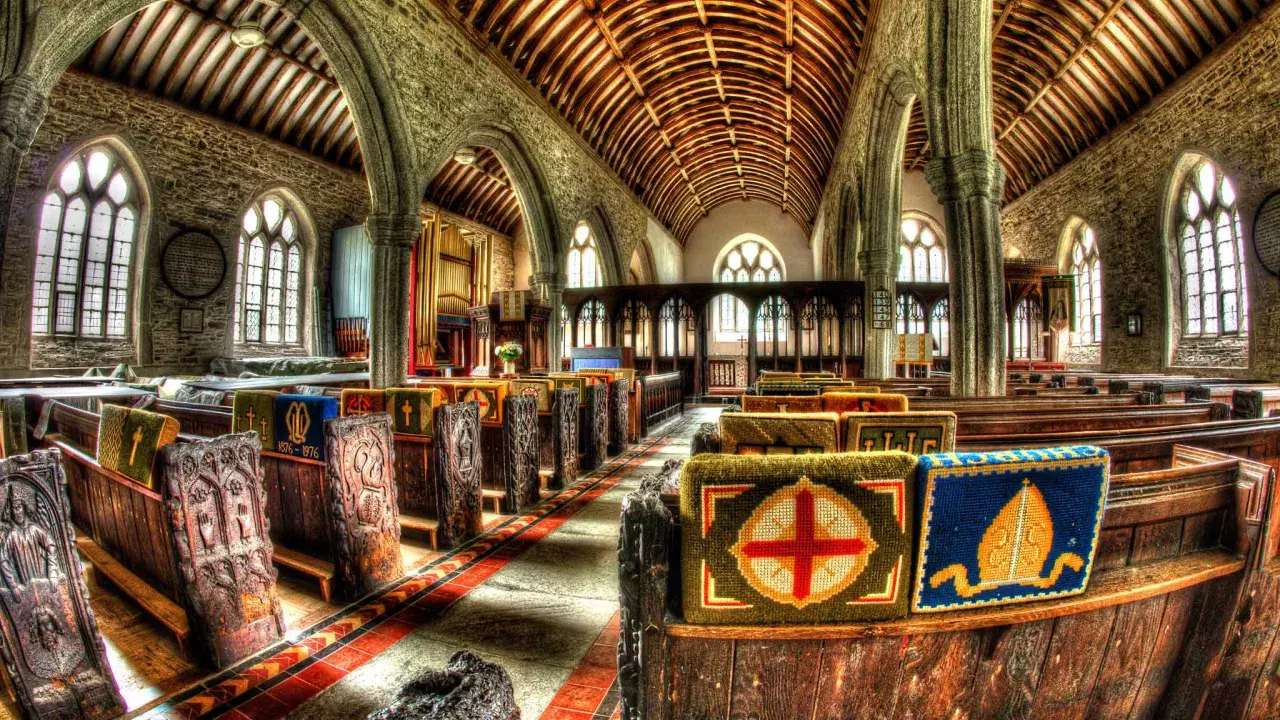 St Nonna’s is justly famed for its collection of 79 carved bench ends representing not only biblical references but also earlier superstitions and local activities. All were carved in oak by Robert Daye (whose signature is to be found on the bench end adjacent to the font) between 1510 and 1530.