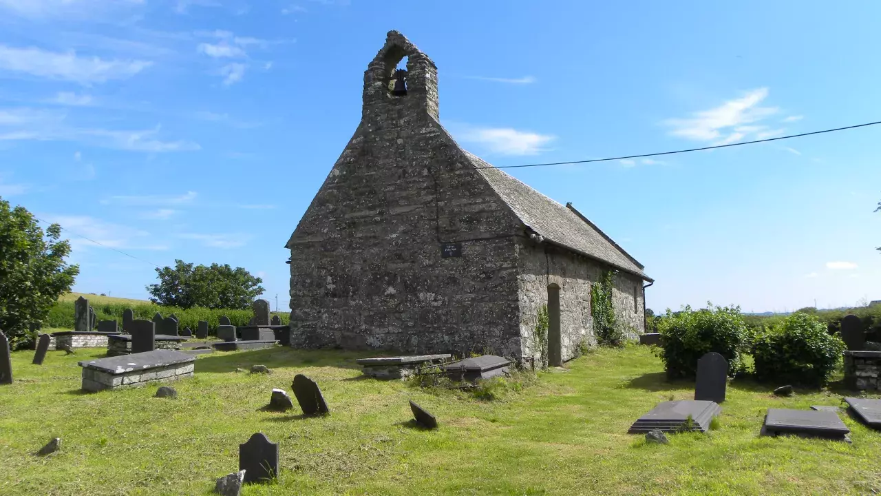 The church sits in a circular llan.