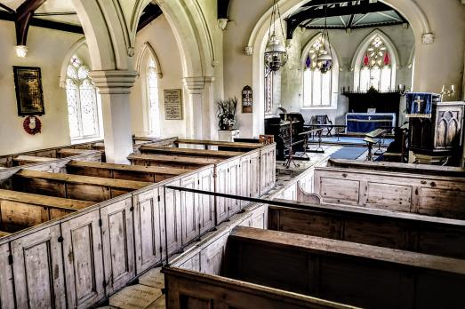 The organ was built in 1839 and has 3 barrels, each with 10 tunes. The church itself is in a beautiful setting, by a footpath that runs across fields to Louth. Other features include Flemish glass roundels and box pews.