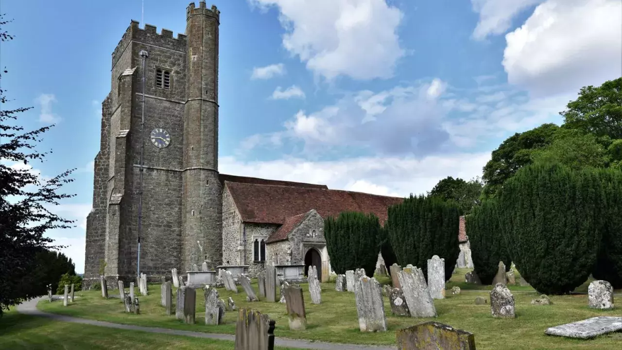 Our medieval church was built in the mid 13th century, and has splendid views over the North Downs.