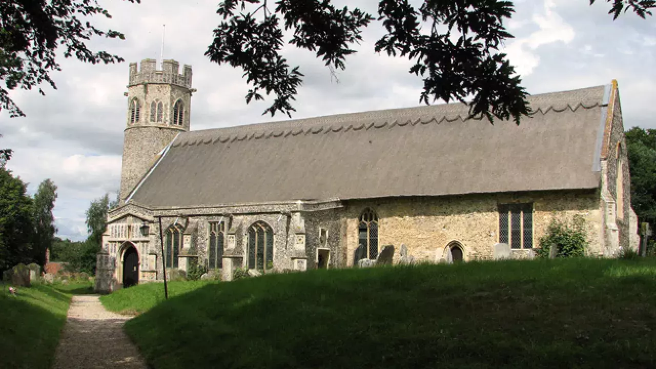 Has one of Suffolk's prettiest round towers, and loveliest thatched roofs and the gargoyles on the south aisle are particularly characterful.