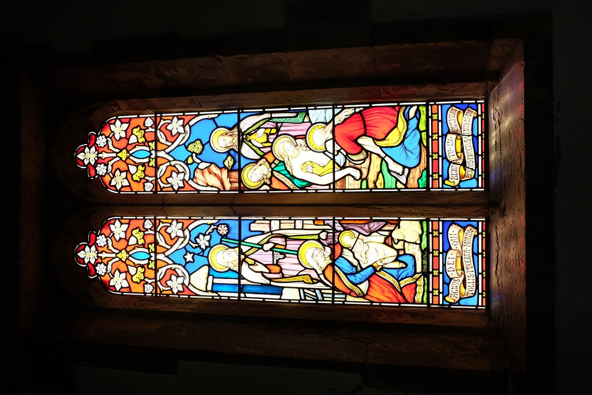 One of the notable features of the church is the 5-light west window dating from the mid 15th century, also featuring rich perpendicular tracery; it is considered one of the finest in the country. The font is possibly from the Perpendicular period. It is lead-lined, and light areas show where new stone was inserted in the rim after the hasps and lock were forced open during the Reformation. The bell tower was heightened during the 15th century, and in mediaeval times there were four bells, now three. They were recast in 1874 but bear their original inscriptions and dates: 1629, 1632 and 1638. The only stained glass windows are in the south wall. They were placed there by a member of the Windham family, who were "lords of the manor" from about 1700 to the 1950s.