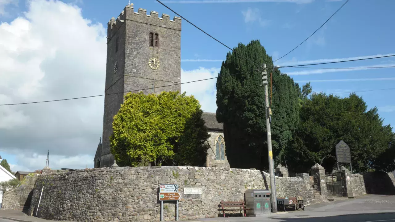 Legend has it that St Tybïe and St Lluan were two of the many daughters of Brychan Brycheiniog and lived devotionally here in the 5th century before they were killed by marauding Irishmen. Llandybïe means the llan (enclosure) of Tybïe.