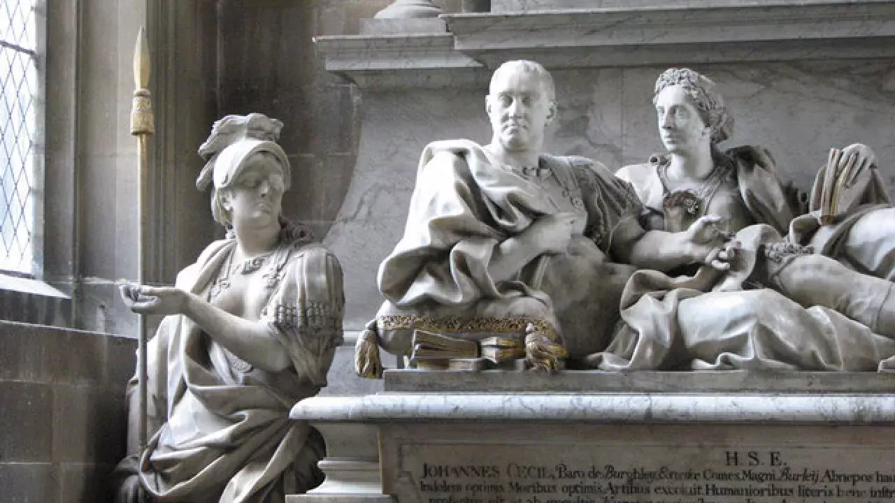 The building itself is a very important example of a complete perpendicular style and retains its original naves and hammer beam roof.    the tombs of the Cecil family from nearby Burghley House .