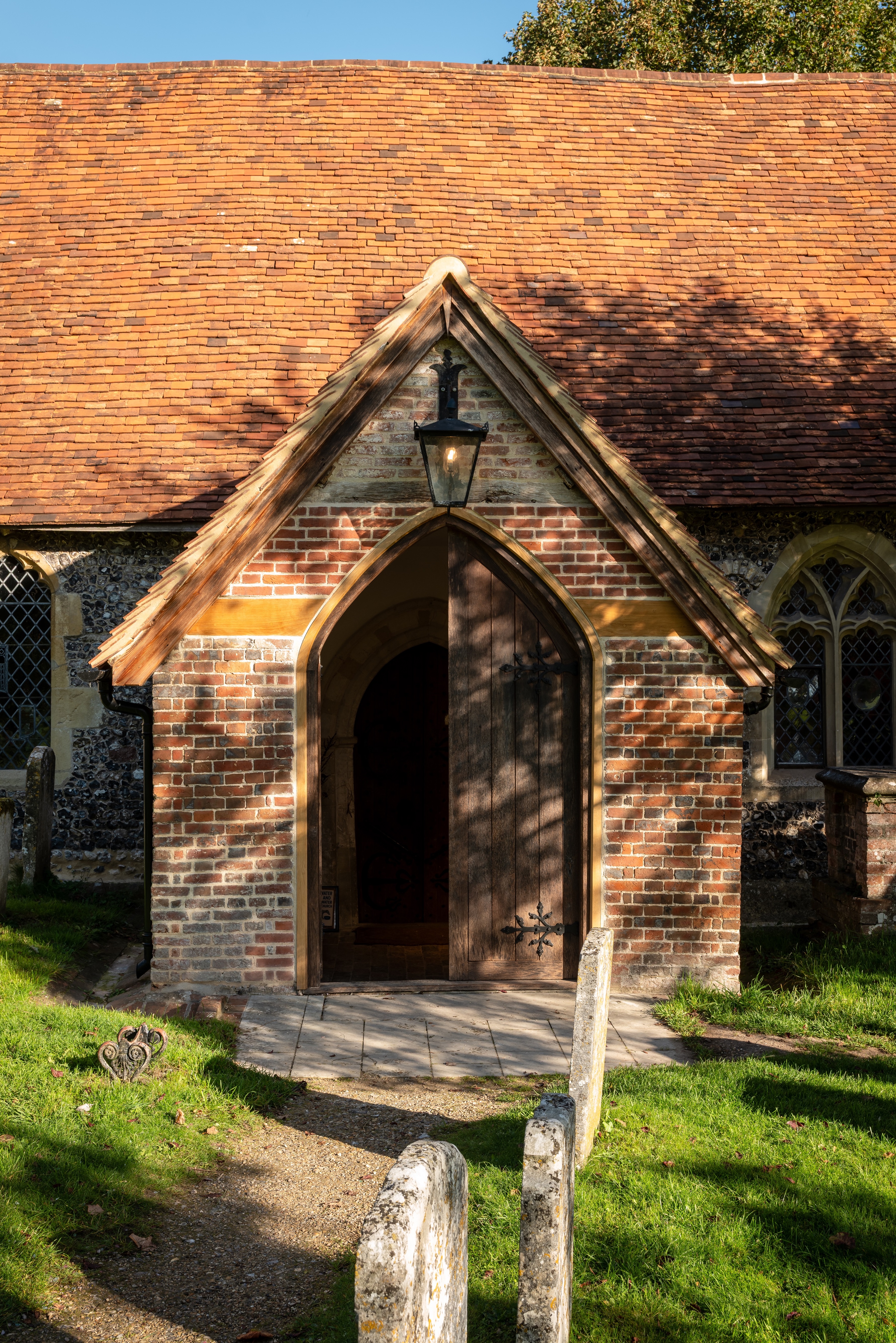 St Mary the Virgin is the centrepiece of Turville village, and sits within a cluster of red brick and flint houses dating back to the 17th century and at the foot of a ring of hills, at the top of which is the windmill featured in the film Chitty Chitty Bang Bang. However, the church is best known for being 'St Barnabus' in the television series The Vicar of Dibley. As a result, its significance extends well beyond the village; it is often referred to as a quintessential example of the English country parish church.