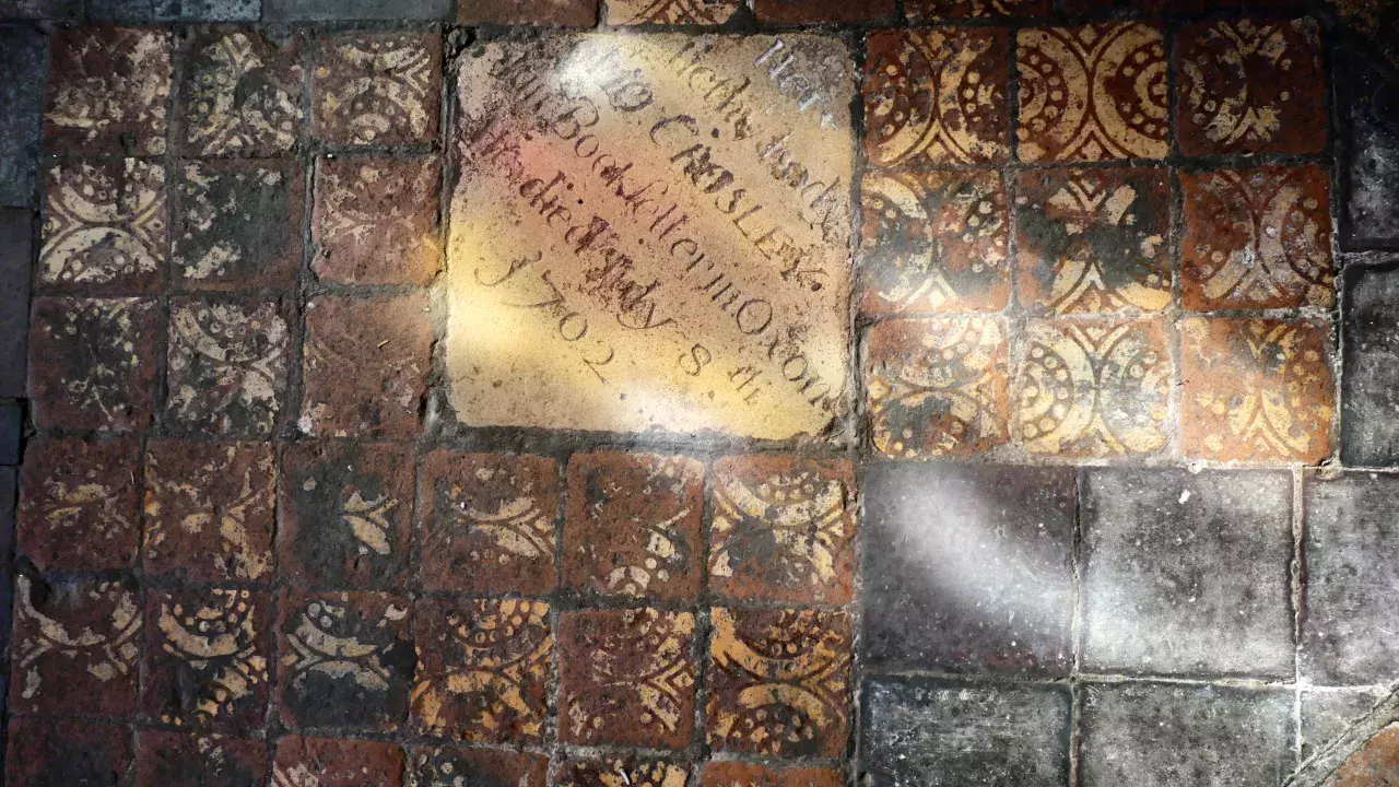 There are many medieval encaustic slipware tiles of simple design in the chancel and centre and south nave aisles. Some of the tiles may have come in the 18th century from Sparsholt Court Manor, after it was destroyed in 1721. On the porch and on the south buttress at the corner of the chancel are three (one above another) and by the door of the chancel, there are scratched rough sundials, or 'mass dials'.