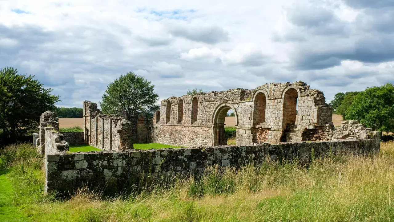 Ruins of the late 12th century church of a small nunnery of'white ladies' or Augustinian canonesses.