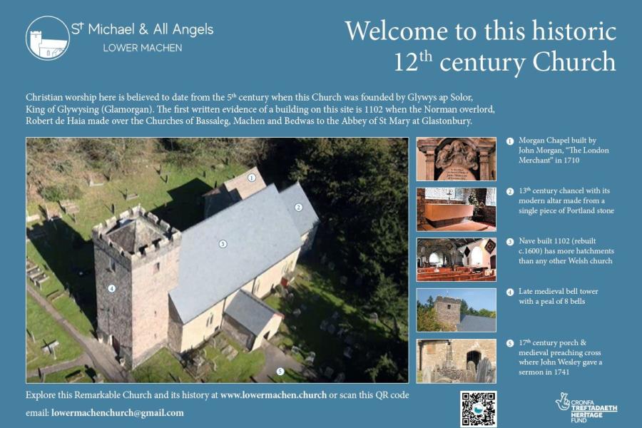 Our church is located in the tiny hamlet of Lower Machen which comprises just 19 houses, only 5 or 6 miles from the sizeable city of Newport. We try to offer the best visitor experience we can with our welcome, website, audio/visual tours, guided tours and books.