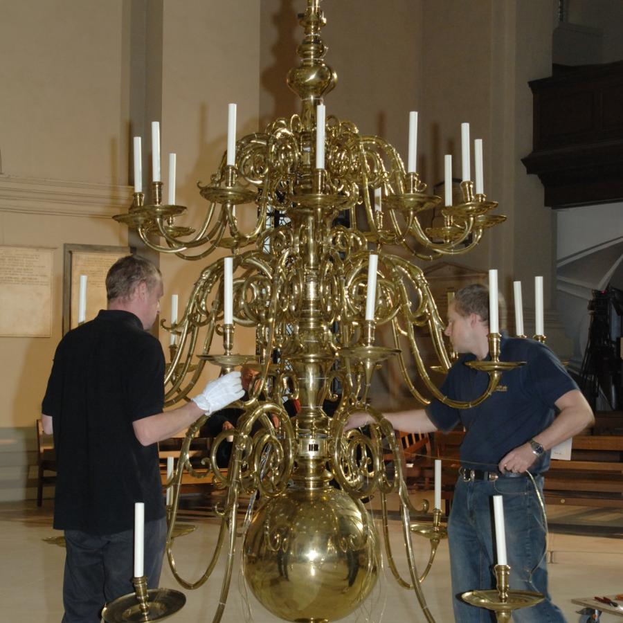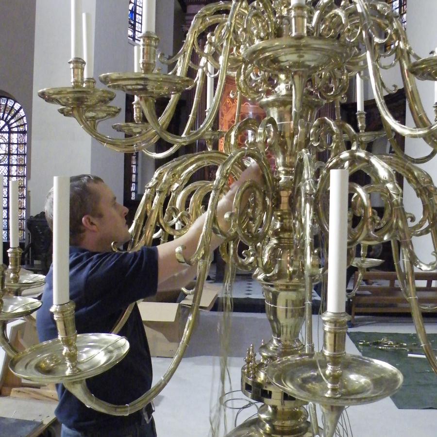 Previous projects include pew lights for choir stalls at Canterbury Cathedral, Floor standing candelabra restoration for Church of St Luke, Balham and restoration and installation of an antique Dutch brass chandelier at St Luke's Church in Bloomsbury.